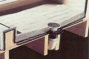 A collector or pan refers to the horizontal surface located at the bottom of the shower. The collector typically consists of a non-slip surface slightly banked towards the center or wherever the drain is located. Combined with three to four inch walls around the side, the goal of your shower drainage plumbing is to get the water to flow to and down the drain.